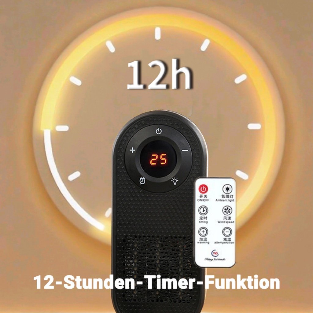 This innovative PTC ceramic heater combines lightning-fast warmth with elegant additional features. It is engineered to offer you instant comfort in any room, while the integrated colorful night light creates a soothing ambiance. Whether in the bathroom, bedroom, or office – experience a new dimension of efficient and safe space heating.
