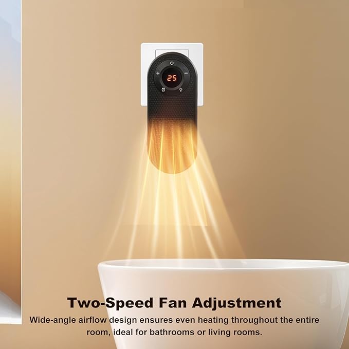 Enjoy even heat distribution throughout your room. With two adjustable wind speeds and a 180° wide-angle airflow, this heater effectively warms every corner of your space, from the living room to the bathroom.