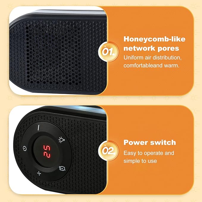 Safety comes first. Thanks to the energy-saving frequency conversion chip, the device automatically shuts off in case of overheating. This allows for worry-free operation in environments like bedrooms, bathrooms (please observe local safety regulations!), or offices.
